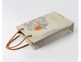 這款褲子禮品袋定制以白牛皮紙為原料,袋身、logo由CMYK四色彩印印刷而成,袋子表面過啞膠;白牛皮紙天然的肌理給人環保又不失單調的感覺,無需過多的雕琢鑲嵌就充滿藝術的氣質,很文藝清新范;褲子禮品袋采用尼龍繩作為拎手,這顏色很有亮澤的尼龍繩給整體偏沉悶的紙袋帶來了亮點,是點睛之筆。