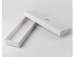 此款項鏈精裝盒選用銅版紙,裱1000克灰板紙,天地蓋式盒型。盒蓋LOGO采用過光膠工藝,設計簡約時尚,適合首飾禮品等產品包裝。如你需要定制類似的包裝,歡迎聯系駿業紙盒廠家:400-666-1581,我們將竭誠為您服務。