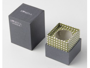 此款香水精裝盒材質選用優質的銅版紙制作而成,其特點是牢度適中,印刷適性良好。美觀的質感,精致的紋理,明顯的厚重感,化妝品包裝盒抗刮、耐折、耐色變。盒身整體灰板裱紙,采用天地蓋式包裝盒。盒蓋LOGO采用過燙銀工藝,設計簡約,適合珠寶、首飾禮品等產品包裝。詳細產品信息,聯系駿業紙盒廠家:400-666-1581.