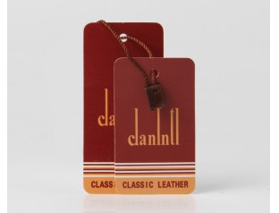 此款服裝吊牌印刷采用了特種紙,商標燙金吊牌設計正面整體以暗紅色為主打色,搭配燙金的LOGO,在濃郁的紅色之中,點綴則耀目的金色,高檔大氣想了解更多服裝吊牌,歡迎致電廣州駿業包裝廠:020-66677799