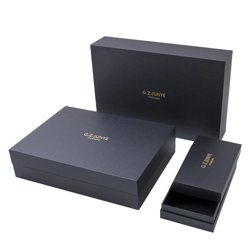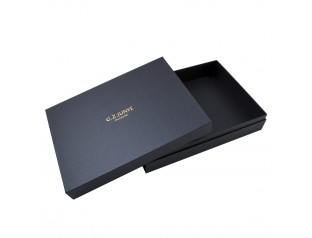 此款皮具包裝盒,表面那磨砂質感的碳黑平面面紙,就知道此包裝是專門為英國產品包裝的。皮具包裝盒,堅硬厚實,表面平滑磨砂質感,光澤靚麗,產品價值檔次瞬間大升。